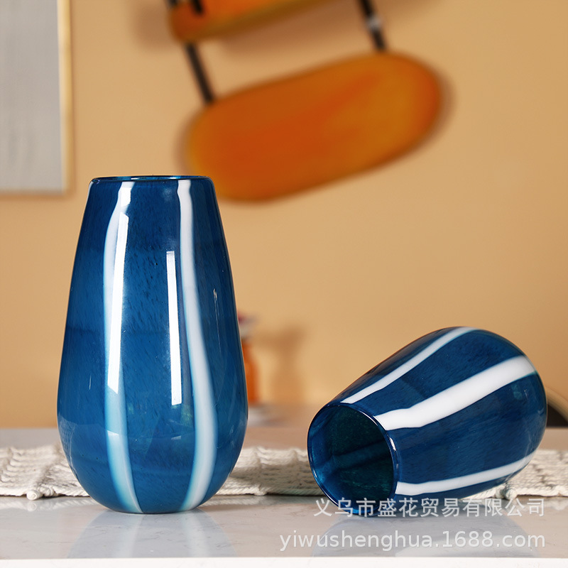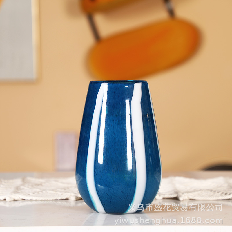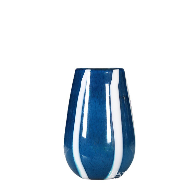 Chinese Blue and White Striped Glass Vase, the perfect decorative piece for hotels, restaurants, living rooms, and showcase rooms.